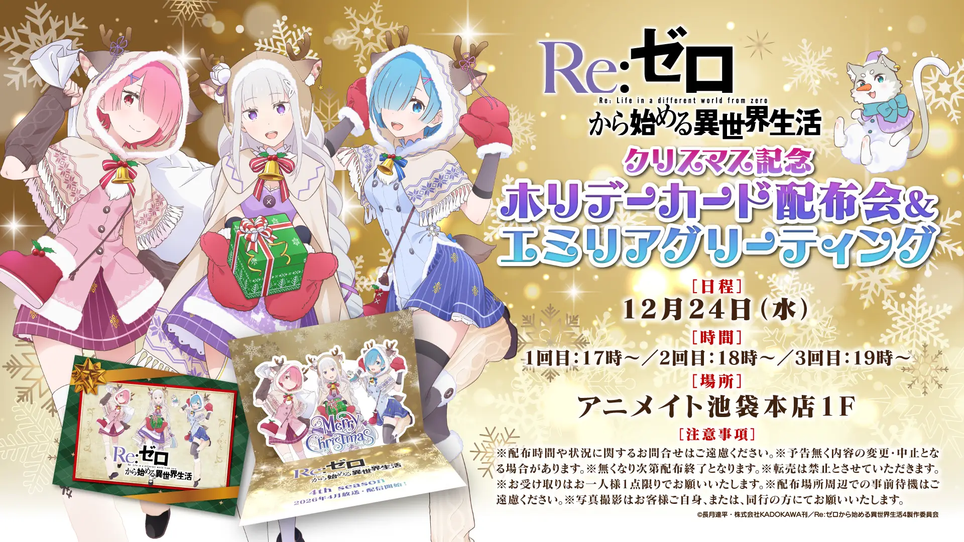 クリスマスモチーフの描き下ろしイラストを使用した立体ホリデーカードの配布会とエミリアの着ぐるみグリーティングが12月24日(水)にアニメイト池袋本店1Fにて開催!