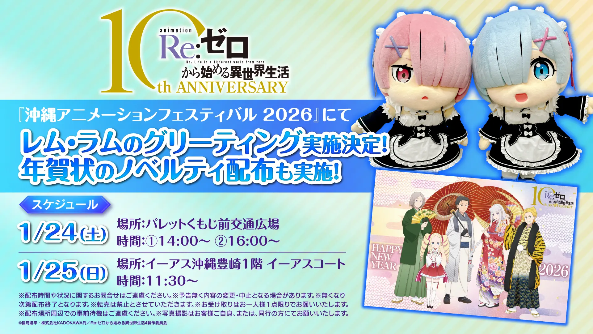 『沖縄アニメーションフェスティバル 2026』でのステージ・グッズ販売に合わせて、レムラムグリーティングも実施決定! 年賀状の配布も行いますので是非お越しください!