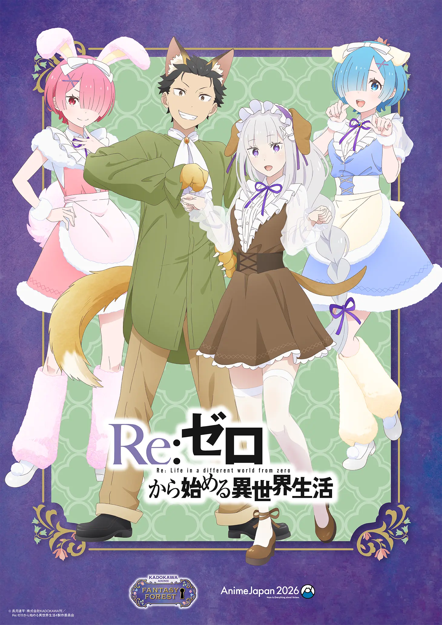 3/28(土)、29(日)開催“AnimeJapan 2026”KADOKAWAブースにて、「Re:ゼロから始める異世界生活」の展示が実施決定! 今年のブーステーマは“ファンタジーフォレスト”。テーマに合わせ、森に住む動物たちをイメージした描き下ろしメインビジュアルも公開! イラストを使用したグッズも制作中です。続報をお楽しみに!
